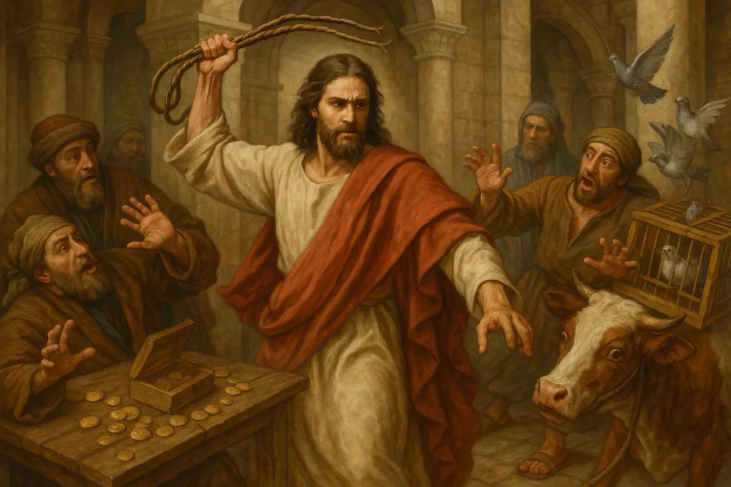 I can still feel the jolt I got the first time I actually read this passage. I don’t mean skimming it during a sleepy Sunday sermon or nodding along to a sanitized, flannel-graph version in Sunday School. I mean really reading it—letting the ink bleed into reality. The mental image stopped me cold. We love to picture Jesus as the gentle shepherd, holding a lamb, maybe smiling softly with a halo glowing just right. But here? Here, in the chaos of the temple courts, we get something visceral. Something raw. Something undeniably dangerous. The air wouldn’t have smelled like incense;…